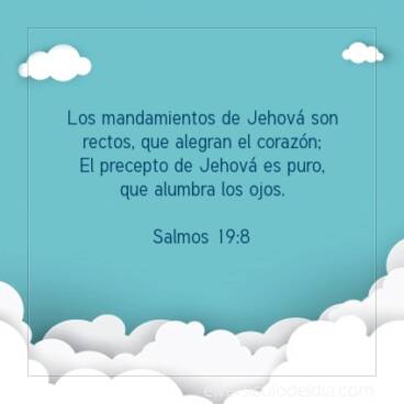 Los mandamientos de Jehová son rectos, que alegran el corazón; El precepto de Jehová es puro, que alumbra los ojos. Salmos 19:8